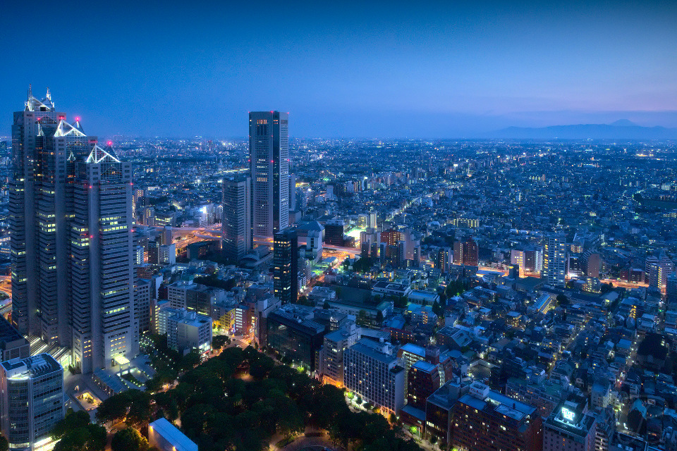 The skyline shot is overlooking 杉並区 (Suginami), the west part of Tokyo, it was taken from the Tokyo Metropolitan Goverment building. On the left side in the front you see the Park Hyatt Tokyo Hotel which became famous after the movie Lost in Translation. On the right side in the background you can see Fujiyama, the highest mountain in Japan, overlooking the mountain ridge in front of it.